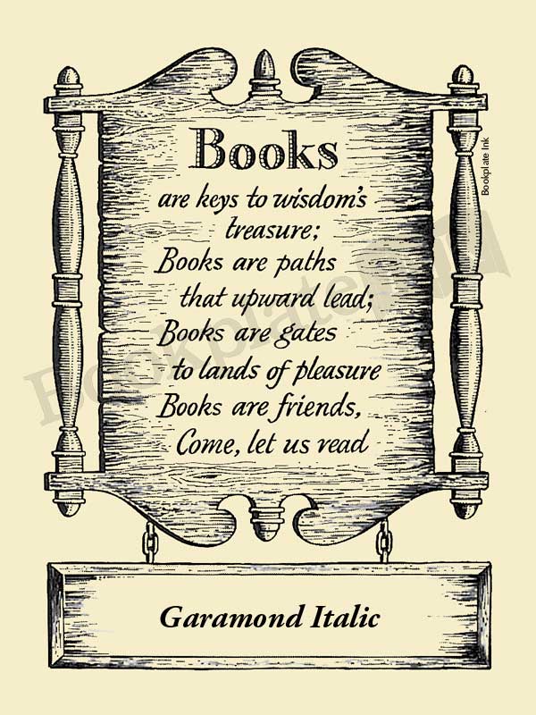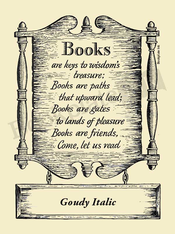 To see an example of this bookplate with your chosen font, go to our Font Samples Page.