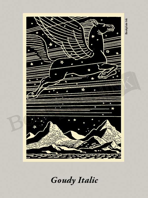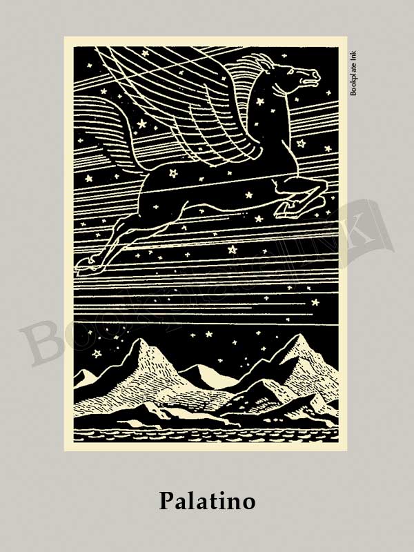 This striking winged horse by well-known artist Rockwell Kent was introduced by the Antioch Bookplate Company in the 1950s. There is room for two lines of text, if needed.