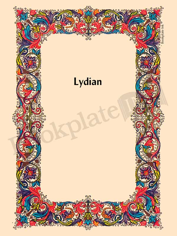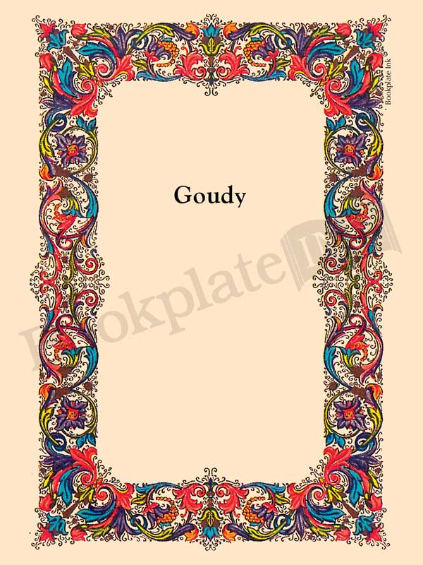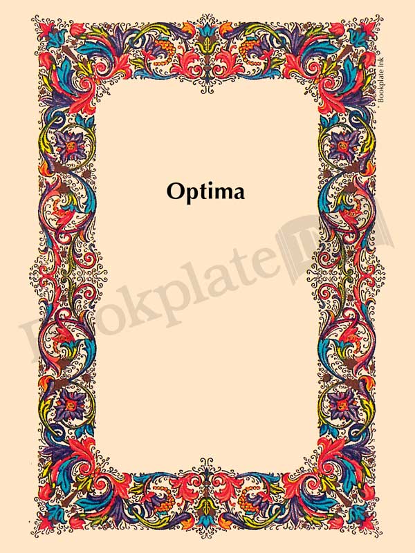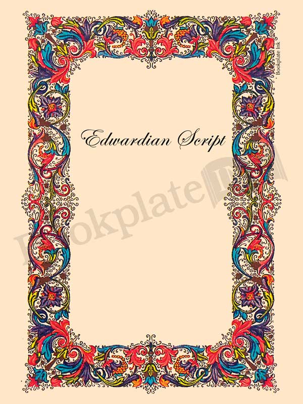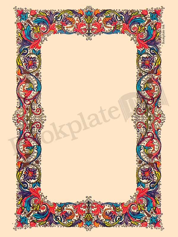 This colorful and intricate border design was first offered by the Antioch Bookplate Company. There is room for several lines of text, making this a popular design for organizations, schools and events.