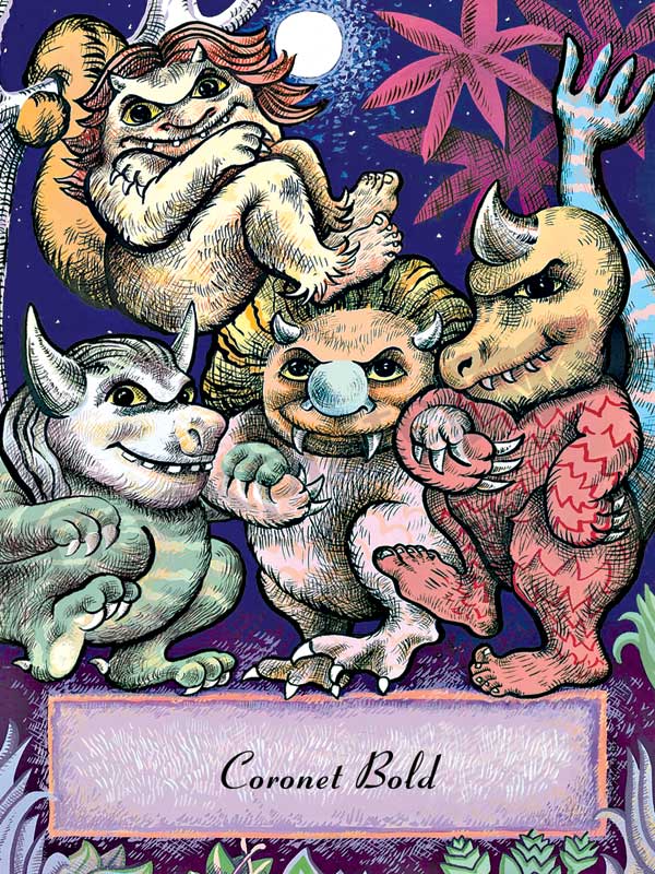 This colorful painting of mischievous bedtime monsters, similar to “Where the Wild Things Are,” will delight any child.