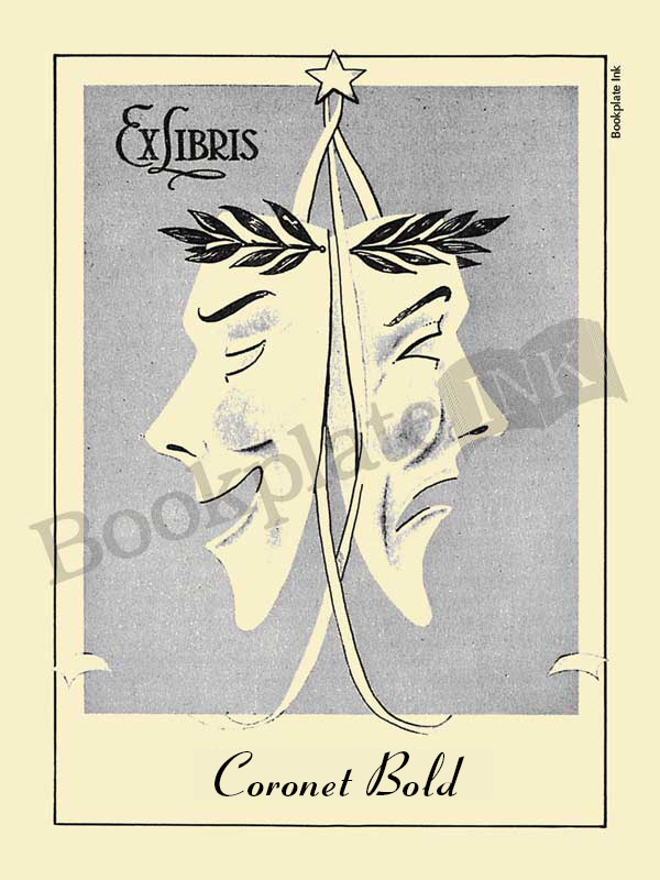 Introduced by the Antioch Bookplate Company in the late 1950s, this design, featuring the comedy and tragedy masks that symbolize the theatre, was adapted from a design by the Etchcraft Company.