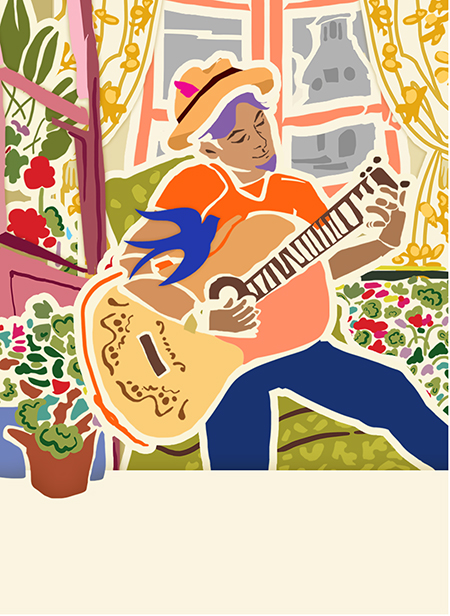 Add a touch of musical charm to your collection with this vibrant and expressive artwork! Featuring a joyful musician strumming their guitar amidst a lush array of colorful plants, this captivating piece is sure to inspire and delight any book lover. This new artwork, inspired by Henri Matisse’s cut-out style, is by Evelia, whose employment in the 1990s at Antioch Publishing in Yellow Springs resulted in her artwork appearing on bookplates, bookmarks, and journals that were sold at stores such as Barnes & Noble, Target and Borders. Evelia has continued to continued to gain national attention as a popular licensed artist. We are pleased to offer bookplate designs by Evelia available exclusively through Bookplate Ink. See Evelia’s full catalog at www.eveliadesigns.com.