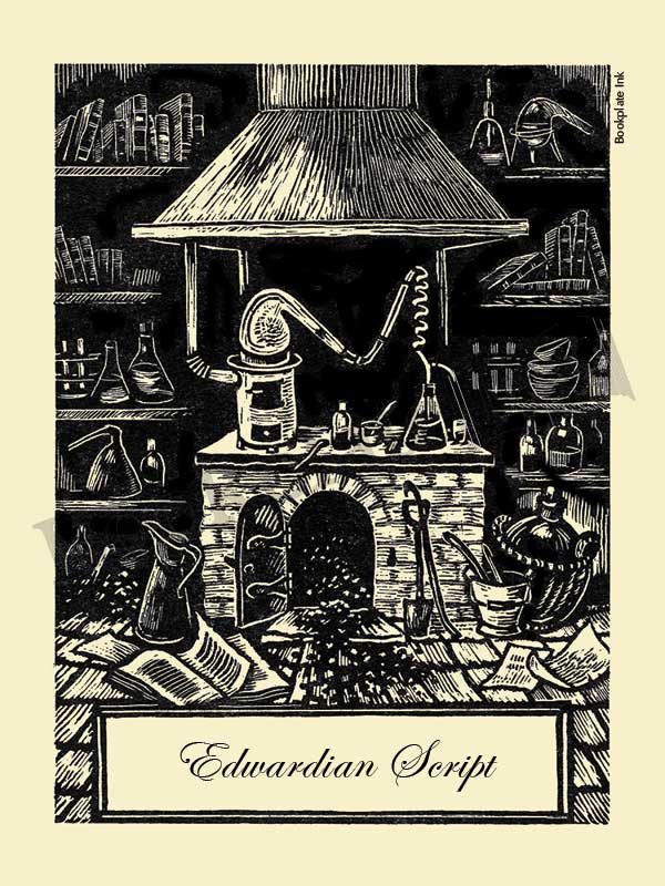 This bookplate was designed specifically for chemists by a well-known Dutch woodcut artist, Thijs Mauve, who also designed M603. It was originally offered by the Antioch Bookplate Company.