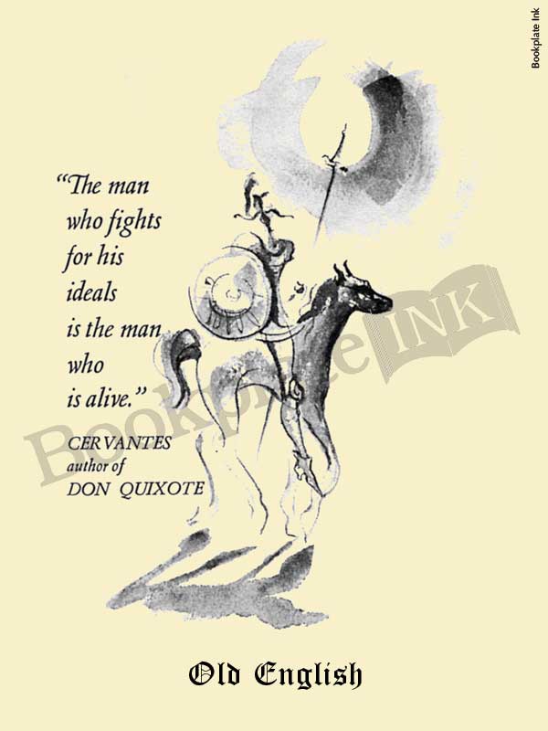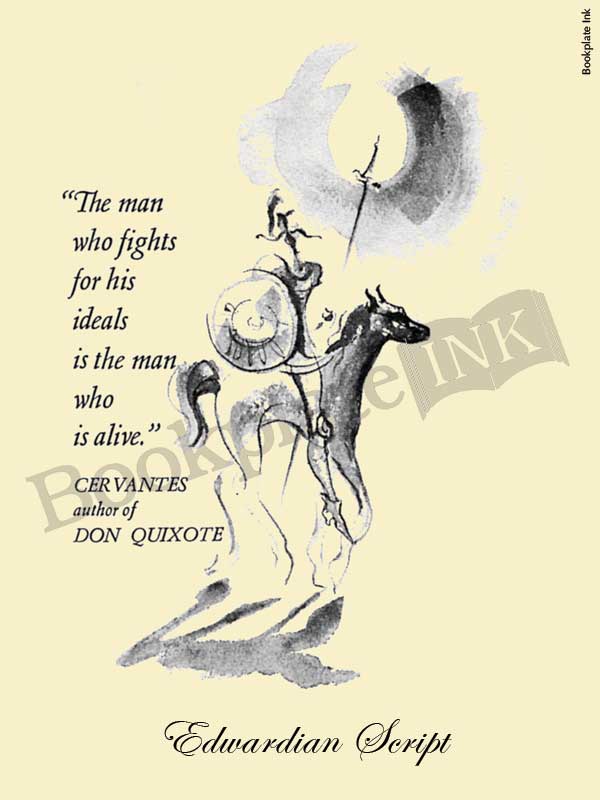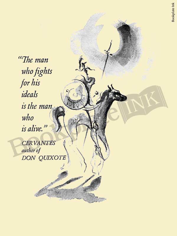 Introduced in the 1970s by the Antioch Company, this drawing of Don Quixote includes the uplifting quote by Miguel de Cervantes, author of the novel by the same name.